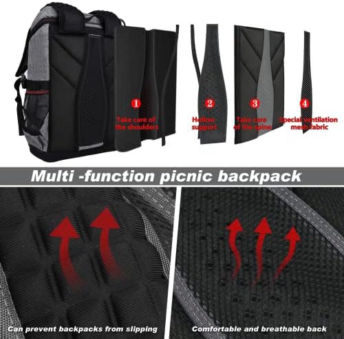 【Multiple Pockets】The cooler bag has 2 side mesh pockets, 1 front zippered pocket, 1 zippered pocket on the lid for extra storage and 1 mesh pocket on the shoulder straps. Perfect picnic backpack cooler for organized storage of meals, beer, drinks, towels, cell phones and more.