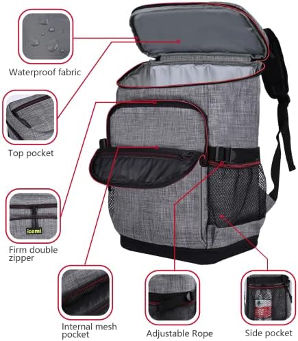 Insulated Cooler Backpack, Cooler Bag Insulated Waterproof, Large Capacity Coolers Bags with Opener, Leak Proof Cooler Back Pack for Camping, Travel, Picnic, Hiking, Beach