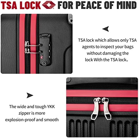 Joyway Luggage 10-Piece Sets,ABS Hardside Suitcase with Spinner Wheels,TSA Lock Luggage Sets for Women and Men (Black Red)…