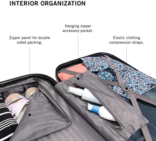 Designed for the modern traveler on the go, this 2-piece 20”/28” hardside luggage set from Kenneth Cole Reaction’s “Out of Bounds” collection is sure to make a statement. Two piece set includes a 20” carry on size and a 28” checked suitcase size. Each piece is packed with features including a spacious fully lined interior, molded corner guard reinforcements for maximum impact resistance, garment restraints to keep your contents in place, and molded side feet that allow the suitcase to stand upright on its side. Multi-directional 4-wheel spinners also allow for a smooth 360-degree rotation over any terrain allowing you to get where you’re going faster. The perfect lightweight and dependable hardside 2-piece luggage set for travelers whom value both style and function. 20″ carry-on overall dimensions: 21.75″ H x 14.5″ W x 8.5″D, 6.25 lbs. 28″ checked luggage overall dimensions: 29.5″ H x 20.5″ W x 11.75″ d, 9.6 lbs. Dimensions include wheels & handles. Backed by a manufacturer 10-year limited warranty.