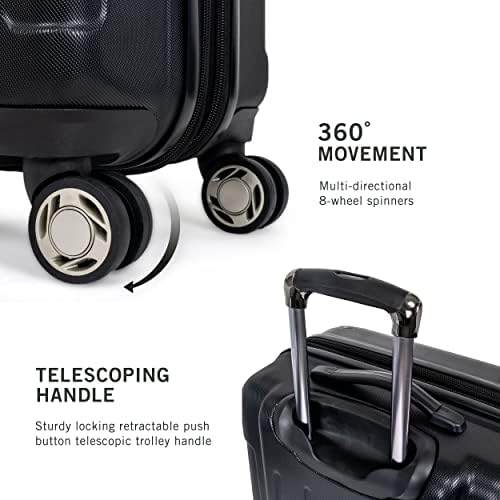 Pack all your travel essentials with ease in this Kenneth Cole Reaction ‘Renegade’ Collection 20-inch lightweight, hardside, expandable 8-wheel spinner carry-on suitcase. This dependable carry-on suitcase is loaded with amazing features, including a spacious fully lined, tear-resistant interior, multiple interior zipper pockets and mesh pockets, a garment restraint panel to hold your clothes in place, and two elastic shoe pockets. The bag even expands an additional 2-inches for extra carrying capacity when needed. The exterior features four molded corner guard reinforcements that provide maximum impact resistance, protecting your bag from excessive wear-and-tear. Self-repairing coil zippers meant for long-lasting use glide effortlessly around the bag to keep your belongings safe and secure. The luggage boasts a lightweight construction to help you adhere to airline weight restrictions and avoid unwanted airport fees. Smooth, multi-directional 8-wheel spinners provide 360-degree rotation over any surface, allowing you to travel with ease. Features a sturdy, locking, retractable push-button telescopic trolley handle that extends 41 inches tall and is conductive to simple one-handed use. The 20″ Carry-on size was designed to meet most yours. Based & international airline carry-on size requirements and to fit into most airline overhead bin compartments. This Kenneth Cole Reaction ‘Renegade’ 20″ Carry-On Suitcase is a modern, yet traditional carry-on suitcase, perfect for travelers whom value both style and function. ★ Backed by a manufacturer’s 10-year limited guarantee against defects. ★ Overall Dimensions includes handles and wheels. ★ 20″ Carry-on overall dimensions: 22” H x 14” w x 9” – 11” D. ★ 20″ Packing Dimensions: 20” H x 13.5” w x 8.5” – 10.5″ D. ★ 20″ Weight: 7.35 lbs. ★