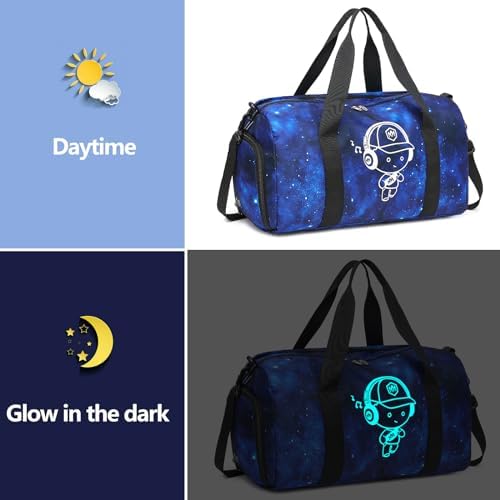 Small gym bag for boys measures 18.1L x 8.7W x 9.1H inches with 23L capacity, this kids travel bag roomy design easily fits everything your child needs