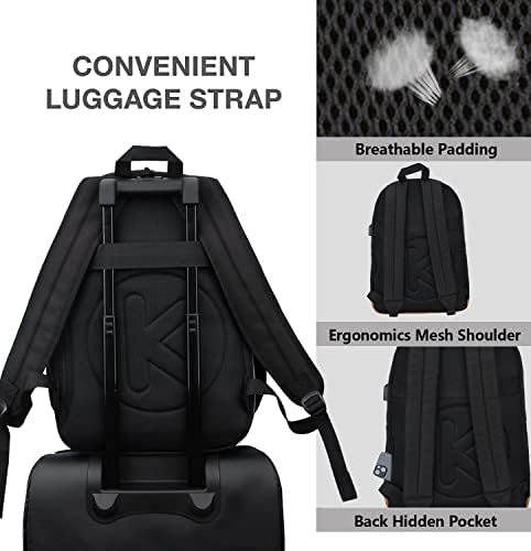 KOPHLY Large Carry-on Travel Laptop Backpack with USB Charging Port For Men and Women, Classic Backpack for College, Work Bag, Travel Backpacks(18Inches/Black)