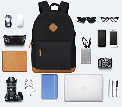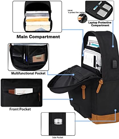 DURABLE MATERIAL and WATER RESISTANT: Made of Water Resistant and Durable Polyester Fabric with brown leather bottom, good quality zippers. Ensure a secure and long-lasting usage everyday and weekend.Serve you well as professional office work backpack for men and women,slim USB charging bagpack,college backpacks.