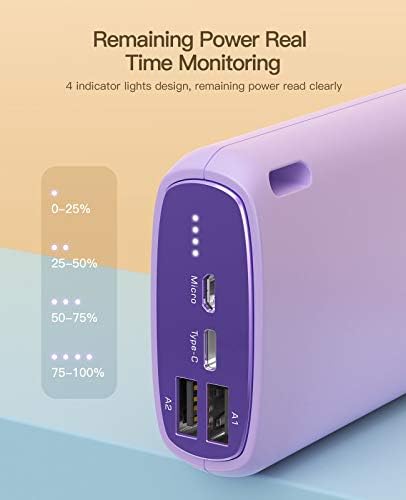 Long-lasting – The massive 26,800mAh cell capacity provides more than 5 charges for iPhone 13, almost 5 full charges for iPhone X, more than 4 charges for Samsung Galaxy S10. Universal Compatibility – The power bank compatible with iPad, iwatch, Airpods, Samsung Galaxy, most other Smart cell phones, Tablets, Bluetooth devices and moreDual USB Output — The Dual USB ports to charge your two devices simultaneously. The Fast Charge version (colour named QC+color) also has a usb c output, which support fast charging function.4 LED Lights — Four led lights show the current remaining power of the item(25%~50%~75%~100%), easily press the power button to turn it on or offReliable Security Mechanisms– Built-in smart protection system, the USB battery pack ensures complete protection for you