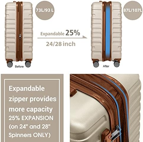 【 Expandable Luggage 】 24″&28″ suitcase are designed to be expandable, which can expand 25% of the additional space. 20 & 24 inch carry on luggage is perfect for business and personal travel, 14 inch makeup bag comes with shoulder straps.