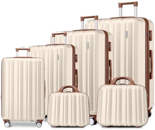 【FULL FEATURED INTERIOR】Our suitcase is designed to fit more into your trip and keep them organized. It features two compartments with compression straps and mesh zipper pockets for neat and orderly packing. Six different sizes luggage set meets you different traveling plan, particularly family vacations. Worldwide 2 year warranty for peace of mind.