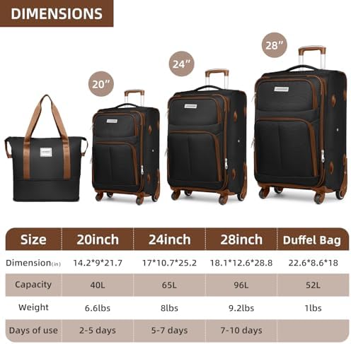 【PREMIUM SUITCASE SET】Better than polyester material, the luggage is made of premium oxford fabric that is super lightweight yet durable, water and stain resistant. Additionally, its anti-wear edge design ensures long-lasting usage, making it a reliable choice for all your travel needs.