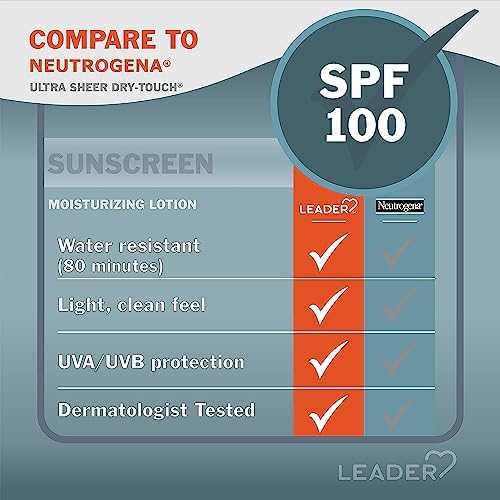 ULTRA SHEER – Get powerful sun protection without the heavy finish. Leader Ultra Sheer broad spectrum SPF 100 sunscreen lotion is a lightweight and fast drying formula that goes on easily and absorbs quickly for an ultra-light, invisible, weightless feel