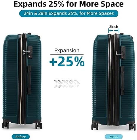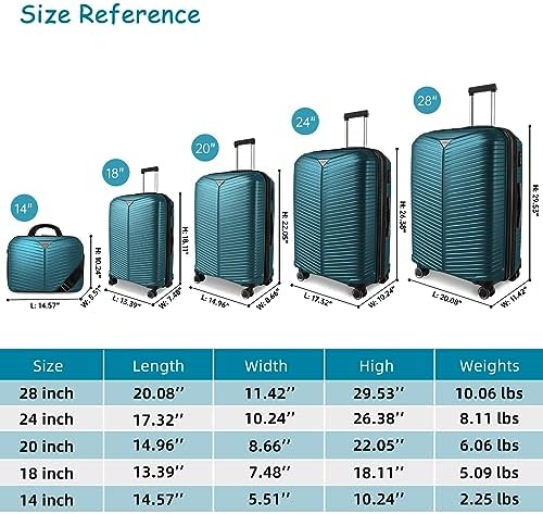 5 Piece Luggage Sets: 28inch, 24inch (ONLY 28inch and 24inch are expandable, adding 25% space capacity for hardshell luggage),18inch, 20inch and 24inch luggage is perfect for business and personal travel, 14inch suitcase can store can store toothbrush,wallet,makeups,etc.
