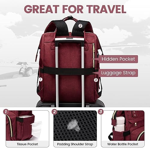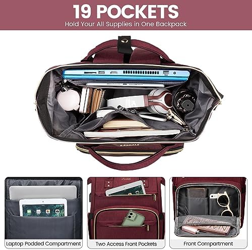 LOVEVOOK Laptop Backpack for Women,15.6 Inch Professional Womens Travel Backpack Purse Computer Laptop Bag Nurse Teacher Backpack,Waterproof College Work Bags Carry on Back Pack with USB Port,Wine Red