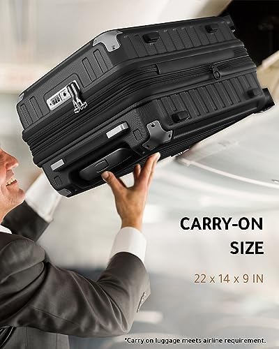 LUGGEX Carry On Luggage Sets 2 Piece with Spinner Wheels – Polycarbonate Expandable Hard Shell Suitcases -Carry on and Checked Luggage Set (Black Suitcase)