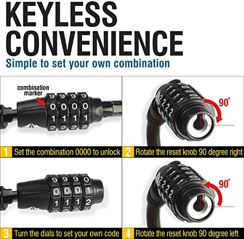 Secure Your Bike – Our 3/8″ bicycle lock with combination is the perfect bike cable lock solution for securing your bike and keeping it safe from theft. Cable is wrapped with vinyl covering to protect against scratching surfaces.