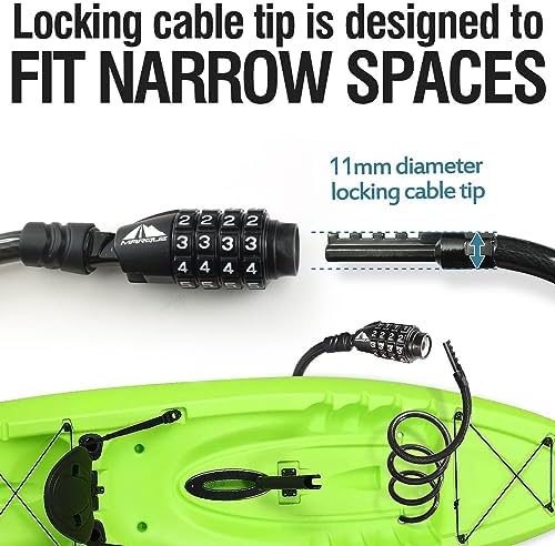 Multipurpose Design – Male end of the cable is designed to fit through narrow and tight spaces making it perfect to secure kayaks and paddleboards and also other common items like scooters, gates, etc