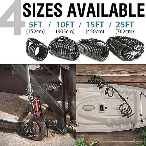 Versatile and flexible – The cable is designed with flexibility in mind. It comes in variety of different length models, allowing you to secure different types of items to fit your needs. Its coil means any unused portion will coil together and not take up additional space.