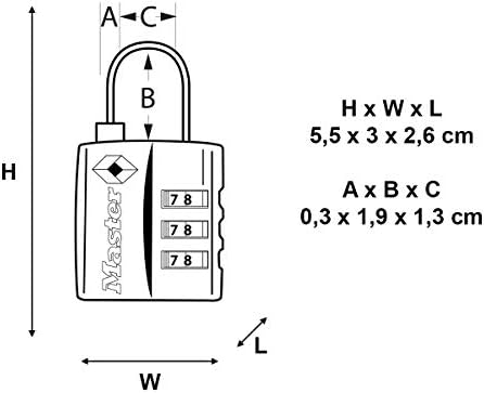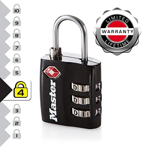 The Master Lock No. 4680EURDBLK Set-Your-Own Combination TSA-Accepted Luggage Padlock features a 30mm wide metal body for durability. 3mm diameter shackle is 19mm long and made of steel, offering more strength. Transportation Security Administration (TSA) screeners can open, inspect and relock bags locked with a TSA-Accepted lock. Lock your checked baggage with the lock TSA screeners won’t cut! The Limited Lifetime Warranty provides peace of mind from a brand you can trust.
