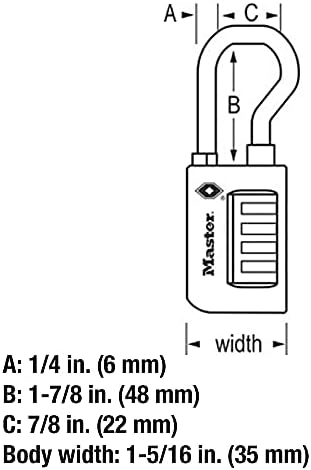 SPECIFICATIONS: 1-5/16 in. wide lock body; 1/4 in. diameter shackle with 1-7/8 in. shackle length, 7/8 in. shackle width
