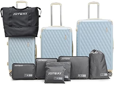 3.Ten Pieces Luggage Set:20-inch, 24-inch and 28-inch large suitcases plus 7-piece travel products will allow you to carry a large amount of clothing on your trip and help you better classify.