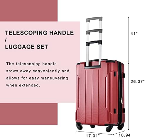 The 20″, 24″ and 28″ luggage can be neatly stored each inside the other. To comply with common carry-on size limit, the 20″ luggage is not expandable, and has no side handle.