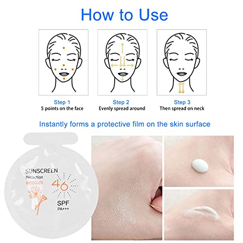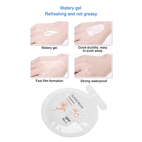 Sunscreen Packets Travel Size: High power sunscreen, delay for 500 minutes+. Enhance skin defense, waterproof and sweatproof, resistance to friction, not easy to fade. Gel texture, refreshing and not greasy, good ductility, easy to spread, fast film formation after application.