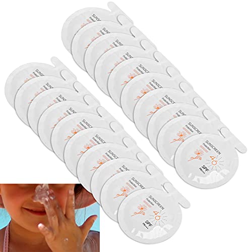 Sunscreen 20 Bags Mini Circle Bulk: 20 bags of sunscreen are available for use, individually packaged, safe and hygienic, perfect for travel use. These convenient travel size sunscreens make it easy to take them anywhere.