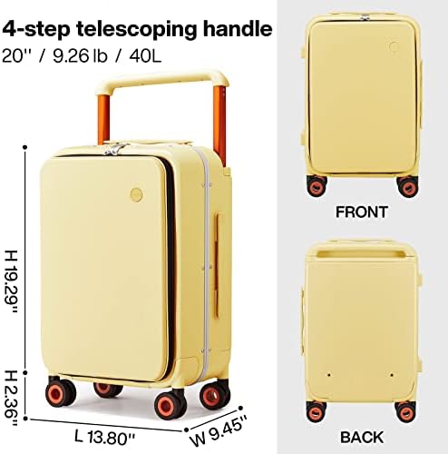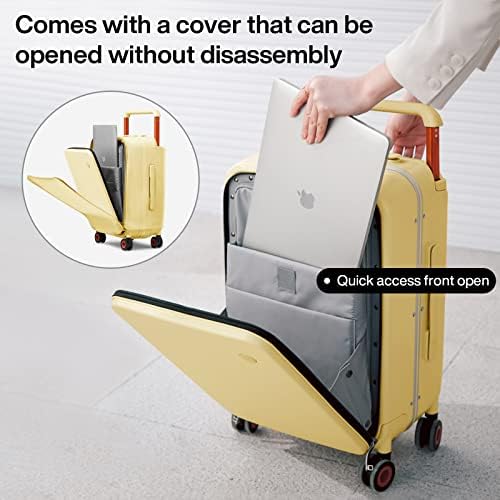 mixi Carry On Luggage Wide Handle Luxury Design Rolling Travel Suitcase PC Hardside with Aluminum Frame Hollow Spinner Wheels, with Cover, 20 inch, Lark Yellow