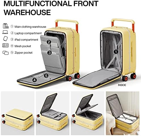 【Convenient】Quick access front open pocket with shockproof pad is effortless to open or close the suitcase, fit for 15.6” laptop, tablet, Books etc. Importantly, assist you save time.