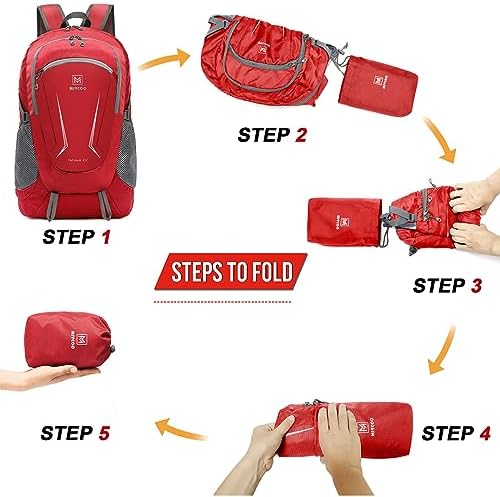 MIYCOO Lightweight Backpack for Men Women – Packable Hiking Travel Backpack – Foldable Outdoor Camping Daypack Red