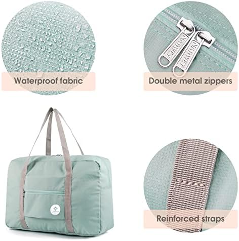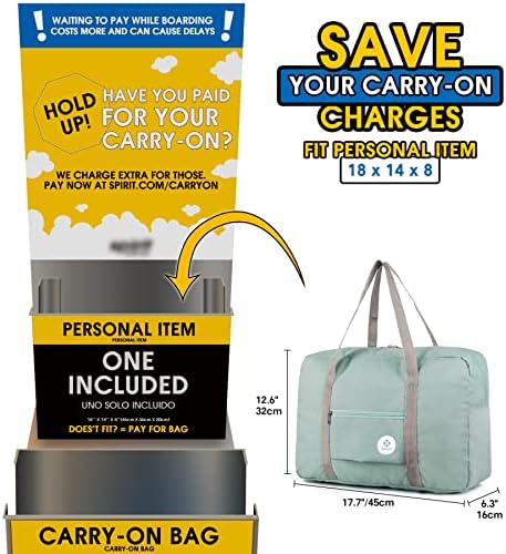 Narwey For Spirit Airlines Foldable Travel Duffel Bag Tote Carry on Luggage Sport Duffle Weekender Overnight for Women and Girls (1112 Mint Green)
