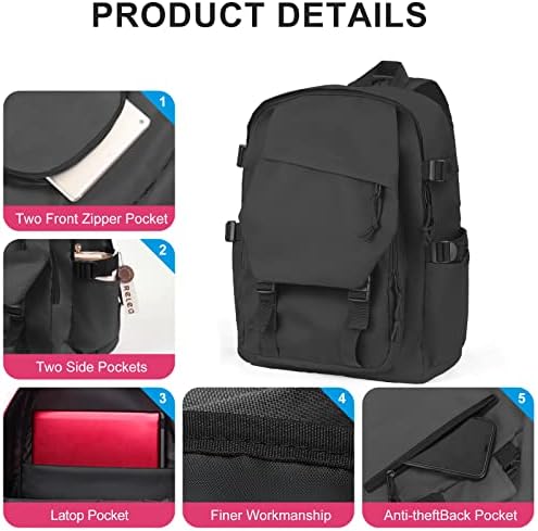 Neurora Lightweight Black Backpack Travel Laptop Backpack for Sports,Work,Security Travel,College.