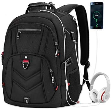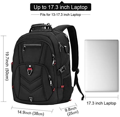 ✈【PREMIUM QUALITY & LARGE CAPACITY】Made of water resistant polyester fabric with smooth dual metal zippers, protects your items in the large backpack from rain. Dimensions: 14.9″ x9.8″ x19.7″(L*W*H), fits for 15.6, 17 and up to 17.3 inch laptop; Weight: 2.65LBS. This large travel backpack with 3 separate compartments and multi-pockets which can provide roomy space for your computer, iPad, power bank, A4 files, clothes and more your items.