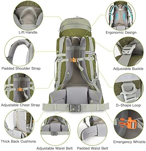 【Waterproof with Rain Cover】This waterproof camping backpack comes with an extra rain cover,keep the goods dry in backpack, no worry about raining during outdoor.