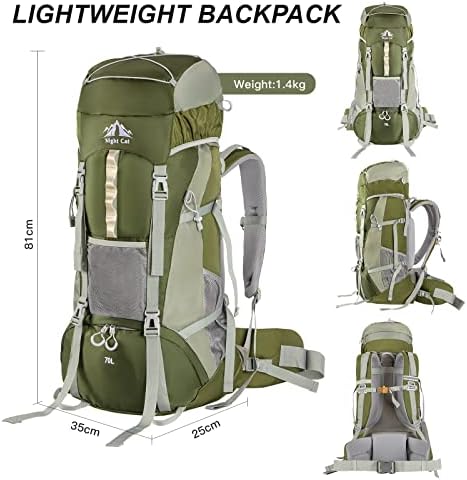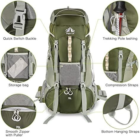 Night Cat Camping Backpacks 70L Hiking Backpack for Men Women Lightweight Waterproof Backpacking Cycling Traveling