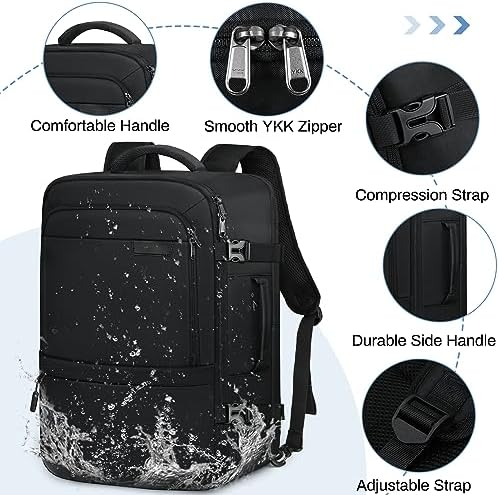 ✈【Durable & Waterproof Material】40l travel carry on backpack is made of water-resistant and scratch-resistant polyester fabric, which can effectively provide your stuffs on drizzle days. Sturdy double YKK zippers and upgraded reinforced stitching make this suitcase backpack last longer. 4 exterior compression straps are designed to secure backpack shape and prevent internal items from sloshing around.