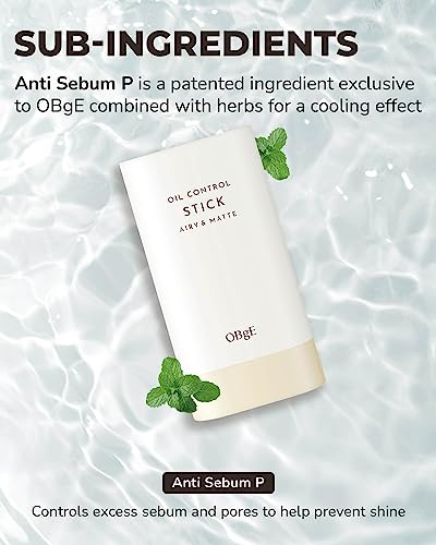 OBgE Oil Control Stick (0.6oz) – Non-Greasy, Soothing & Cooling Facial Care. High Defense. Lightweight, Long-Lasting Protection, Oil Absorption, No Clumps. Travel Essentials. Witch Hazel, Mint.