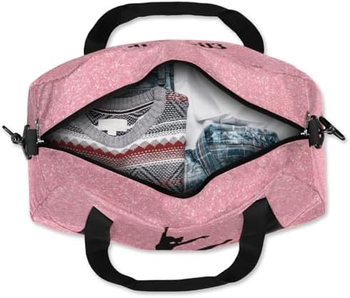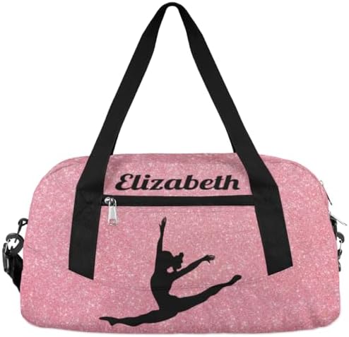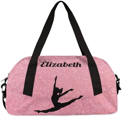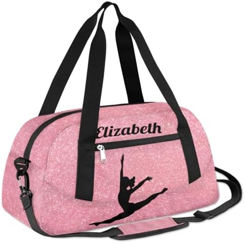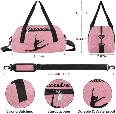 Personalized Custom Kids Duffel Bags, Customized Gifts Sports Gym Bag Custom Name Girls Dance Bag Overnight Weekender Sleepover Carry On Travel Tote Bag for Girls, Rose Golden Glitter Dancing