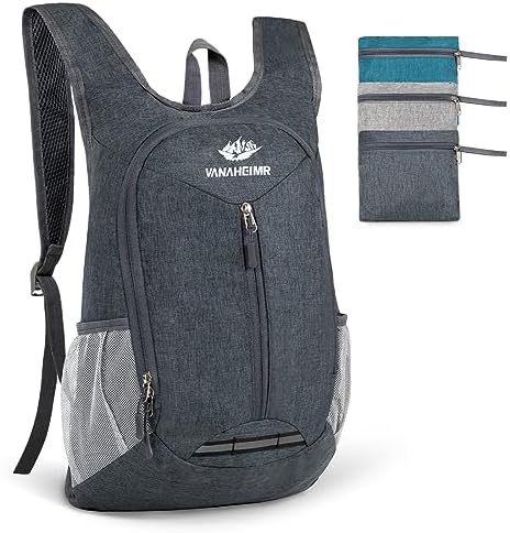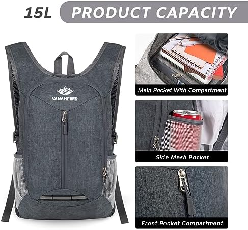 Prpeko Hiking Backpack Small Lightweight Hiking Daypack 15L for Men Women, Waterproof Outdoor Sport Travel Foldable Day Pack for Camping Climbing Skiing (Dark Grey)