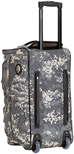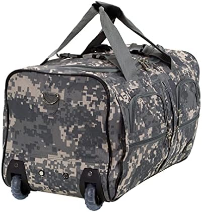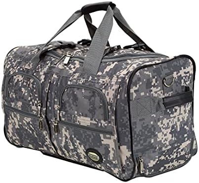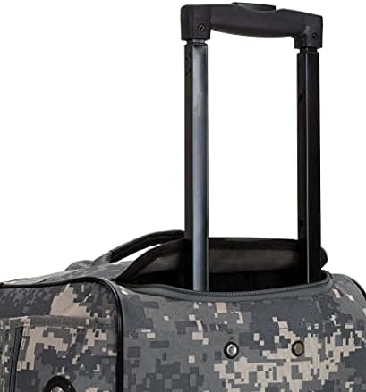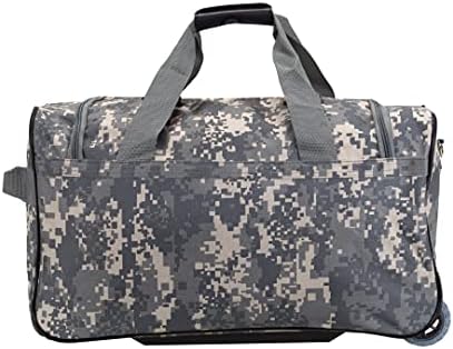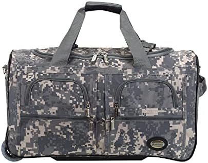 Travel in style with this great soft-sided rolling duffle bag. Bag features a heavy duty polyester construction. Inline skate wheels for superior mobility, internal retractable hide-away handle system, U-top opening provides easy access to roomy zipper secured main compartment. Two fron zipper-secured compartments, adjustable ergonomic shoulder strap. Made of 600 denier heavy duty polyester. Measures 22″L x 12″W x 11″H