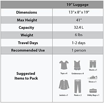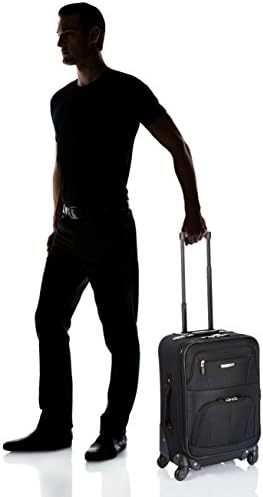 Four multi directional spinner wheels rotate 360 degrees for easy maneuverability. This luggage allows you to pack more while avoiding the excess weight surcharges imposed by most airlines. Multi-directional spinner wheels for easy maneuverability Modern internal aluminum telescoping handle with push button handle. Interior mesh and zip pocket and elastic pocket 22″X13″x8″ (with wheels) weighs 9 lbs