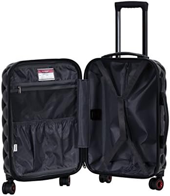 This 3 pc. set is made of polycarbonate/ABS. Polycarbonate is the same material used to manufacturer bullet proof glass. This material is extremely lightweight, durable, and protects the contents of your luggage. Eight multi directional spinner wheels rotate 360 degrees for easy maneuverability. This luggage allows you to pack more while avoiding the excess weight surcharges imposed by most airlines. Multi-directional spinner wheels for easy maneuverability modern internal chrome telescoping handle with push button handle. Interior mesh and zip pocket and elastic pocket 22″X14″x9″ (with wheels) weighs 6 lbs. , 24″ x15″x10″ weights 8 lbs. , 28″x17″x12″ weighs 10 lbs.