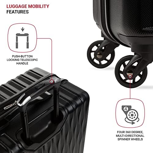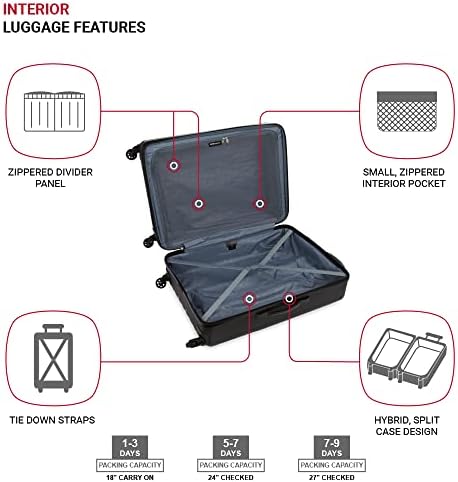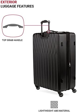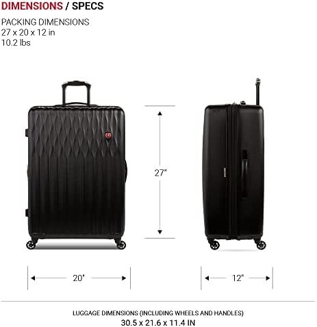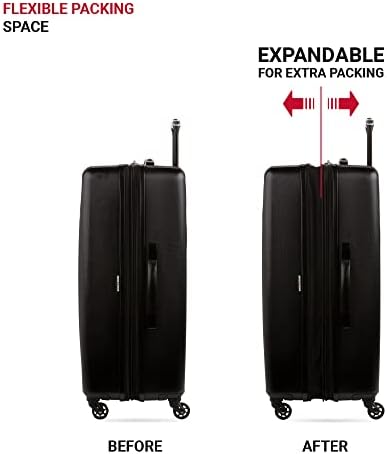 Traveling doesn’t have to be a hassle thanks to SwissGear’s 8018 Expandable Hard Shell Luggage with Spinner Wheels. Perfect for any trip, this 3-piece hard suitcase set includes an 20″ expandable carry-on suitcase, a 24″ medium suitcase, and a 27″ large suitcase. The durable ABS construction includes co-molded lift handle(s) with soft rubber hand grips, making it both stylish and reliable. 8 360-degree multi-directional spinner wheels and a premium, push-button steel locking telescopic handle make it easy to maneuver the entire set. Each hardshell suitcase features a split-case design that expands 2″ for additional packing space, plus a variety of internal pockets that keep you organized. SwissGear products, including our hardshell luggage sets, are tested to ensure our products meet stringent standards. This hard shell suitcase set comes with a 10-year warranty against defects in materials and workmanship.