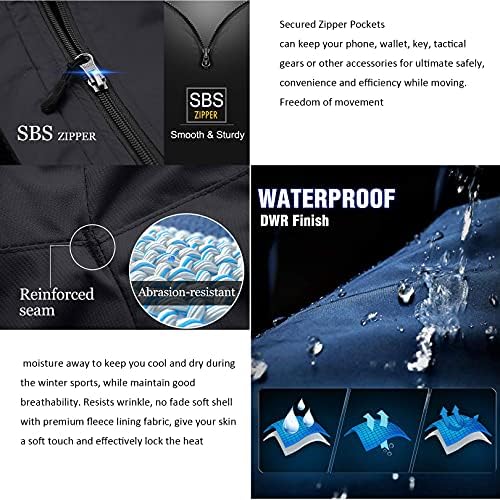 Winter hiking pants men: 5 Secured Zipper Pockets can keep your phone, wallet, key, tactical gears or other accessories for ultimate safely, convenience and efficiency while moving. Freedom of movement – Stretch Spandex Softshell Pants featured with articulated knees provides great flexible.