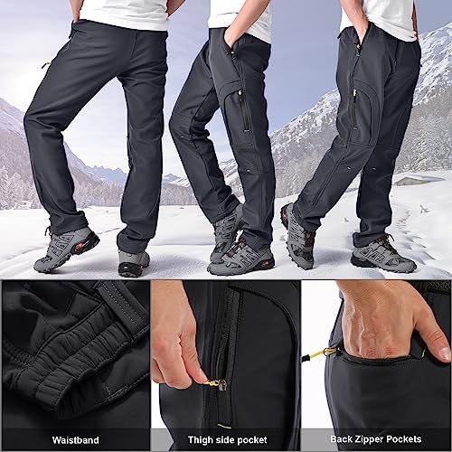 Waterproof pants mens: The softshell pants inner layer made of warm polar fleece which offers superior next-to-skin comfort, stave of winter winds and chilly temperatures so you stay warm all season long. The classic soft shell surface layer using windproof fabric block the cold air to further improve thermal insulation performance. Both outer and inner are useful for preventing loss of heat from the body, effectively to warm your body even under extreme winter or snowy conditions.