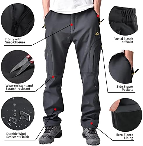 Softshell pants men : Insulated hiking pants Spandex soft shell fabric and lining with 100% Soft Polar Fleece. Fleece Lining with skin-friendly property offers you with superior moisture wicking treatment, breath freely, keep warmth and dry provides the excellent comfort and flexibility.