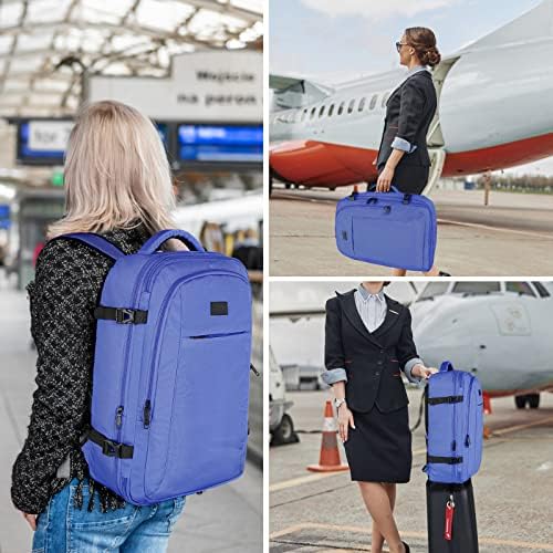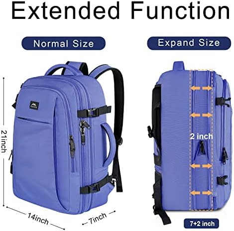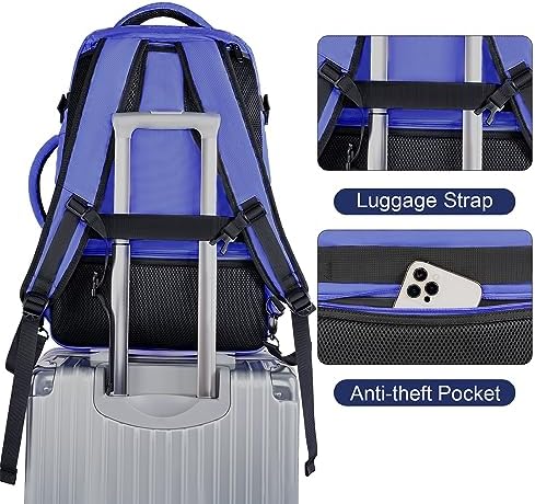 ✈【PRACTICAL & COMFORTABLE DESIGN】: The travel backpack for women airline approved features adjustable shoulder straps and comfortable air-mesh ventilated back panel. The adjustable chest strap can ease the pressure from your shoulder. Internal compression elastic straps can well hold personal items in place. 4 external compression straps keep internal items from sloshing around and reduced stress on the zipper. The international travel backpack is great for international travel and business trip