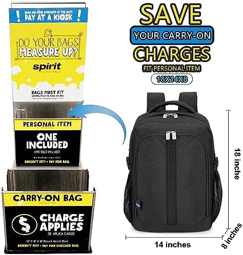 PERFECT SIZE for major US airlines such as Spirit, Frontier, American, Delta and Alaska (18 x 13 x 8 inches)