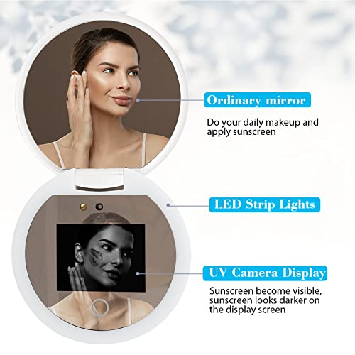 Sunscreen diminishes its effectiveness as time goes on. When you are enjoying the sun, the ultraviolet rays also hurt our skin. With the UV camera mirror, you can always check to see if the sunscreen has worn out and need to reapply makeup, the protected skin looks dark and unprotected skin looks light on the display of the mirror.Areas that have some sunscreen but not enough will be somewhere in between the dark and light tones. You can quickly and easily check the sunscreen on your face, the mirror will protect your skin everywhere and anytime.